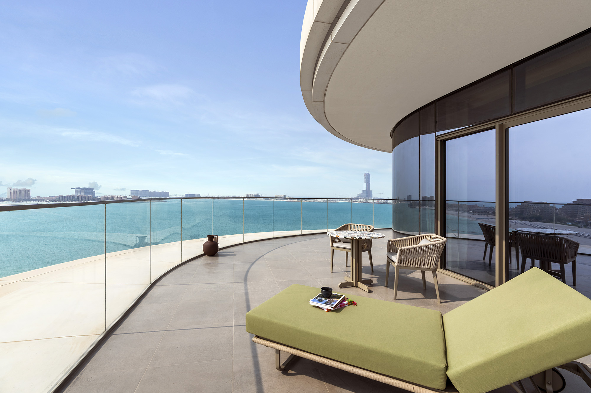 Nestled along Ras Al Khaimah’s lavish coastline, where desert, mangroves, mountain and crystal-clear waters collide to form breathtaking natural landscapes, SO/ Ras Al Khaimah, rooted in the world of fashion, will be a stylish getaway within a series of striking new buildings set against a backdrop of the Arabian Sea. With 257 bedrooms and suites across seven categories, each offering uninterrupted sea views, the property blends sartorial signatures and experiences with the region’s innate culture and sense of style. The colour palette is inspired by local nature and is composed of sunset oranges, sandy stone shades, deep ocean teal and shades of green. The use of light walnut wood, sandstone on the joinery with bronze metal details introduces a sense of warmth and comfort that defines each space within the guestroom.