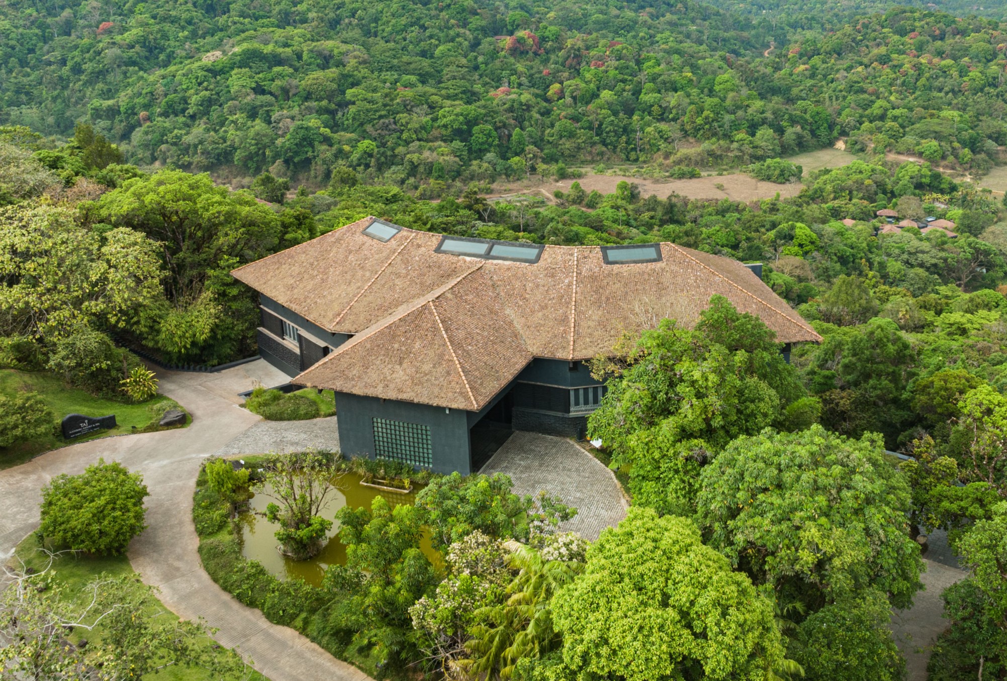 Developed as a rare eco-hotspot within a 180‑acre rainforest landscape, Taj Madikeri Resort & Spa, was built over seven years without cutting a single tree and utilises only 30 acres for development. Construction practices focused on reducing environmental impact. Compressed stabilised earth blocks were produced on‑site from displaced soil and sun‑dried instead of baked, lowering emissions and achieving a near‑zero construction footprint. The land’s natural contours were retained, with pathways created without levelling, and excavated soil repurposed to form a freshwater lake that now supports aquatic life, attracts migratory birds, and aids rainwater harvesting.