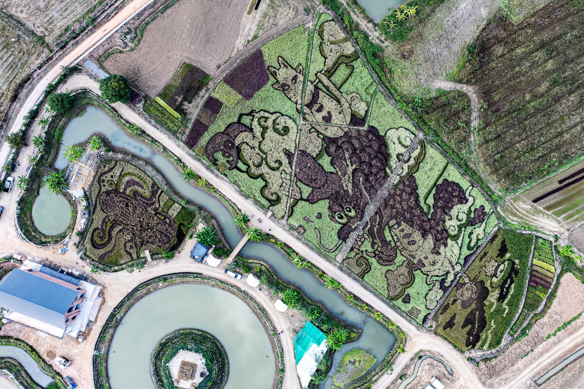 To transform more than 2 hectares (5 acres) of land into the vibrant images, Tanyapong and his team used AI to plot and refine the design outlines and GPS to mark precise coordinates for the careful planting of 20 kg (45 pounds) of rainbow rice seeds.