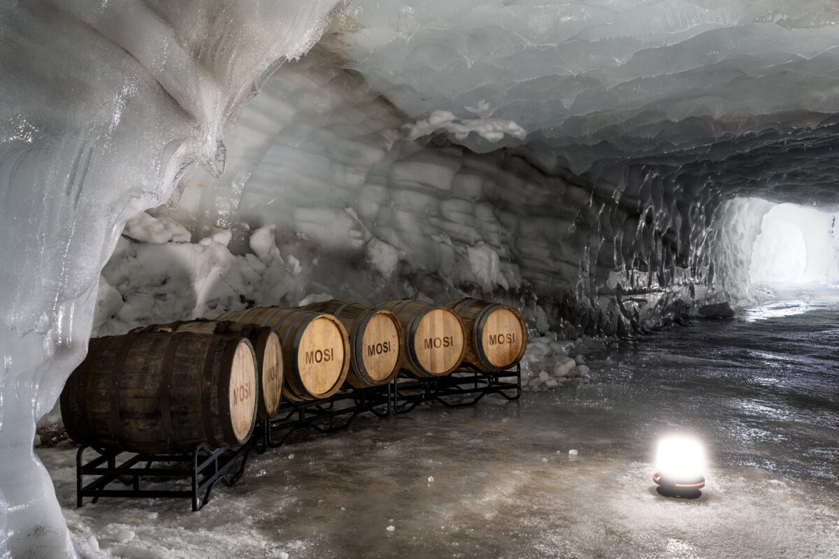 Seven barrels of Mosi now rest deep inside the glacier, surrounded by living, breathing ice. Weathering means letting nature transform the spirit. Stillness, cold, and the pressure of a thousand-year-old ice all add unique layers to each batch, making it unmistakably Icelandic. Langjökull’s ice tunnel isn’t a regular storage site—it’s a place where you can feel the glacier whispering through every frozen wall.